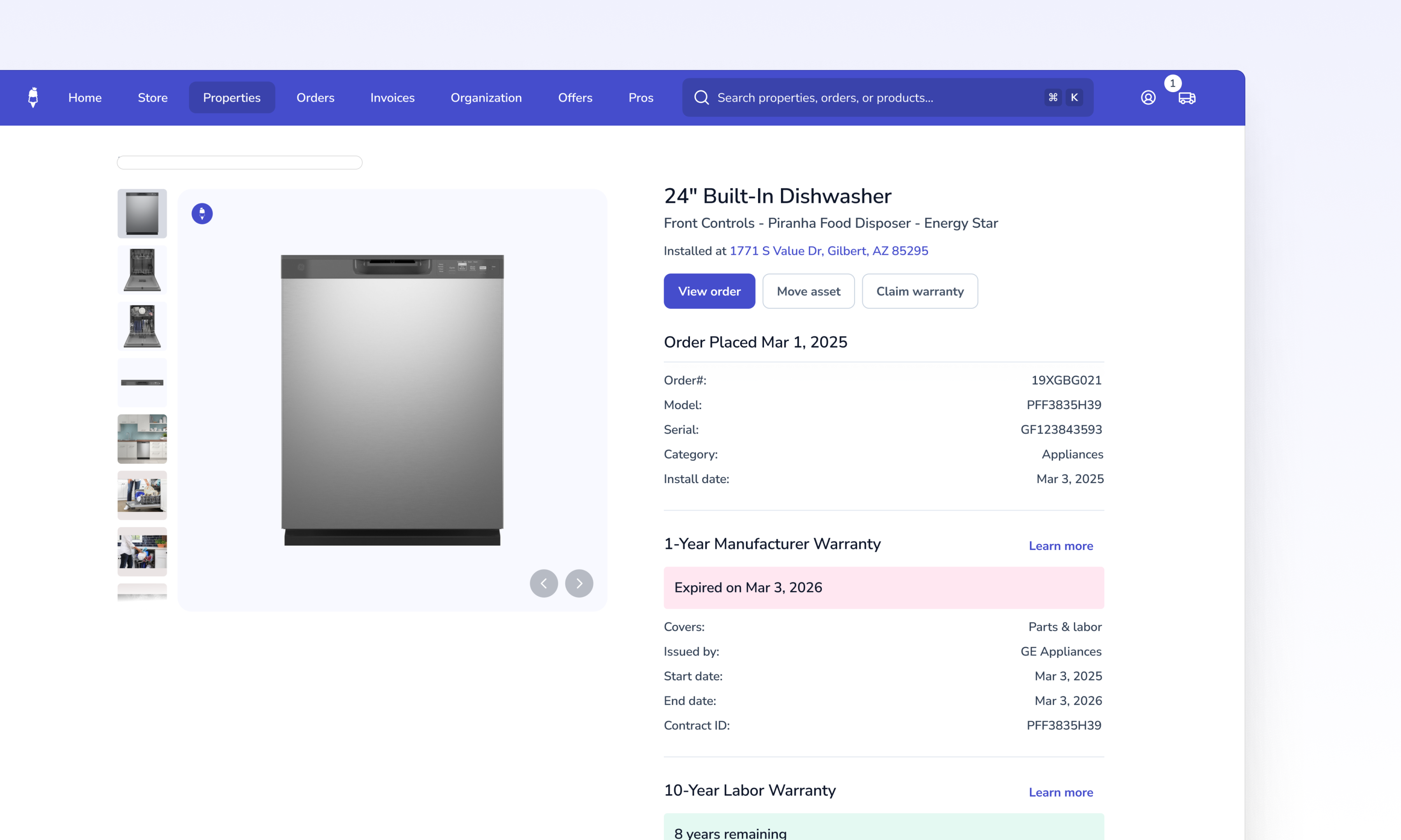 Warranty information no longer lives in scattered spreadsheets or emails. Coverage terms, start and end dates, and claim instructions are now surfaced directly in asset management. Everything you need to understand and act on coverage is in one place.